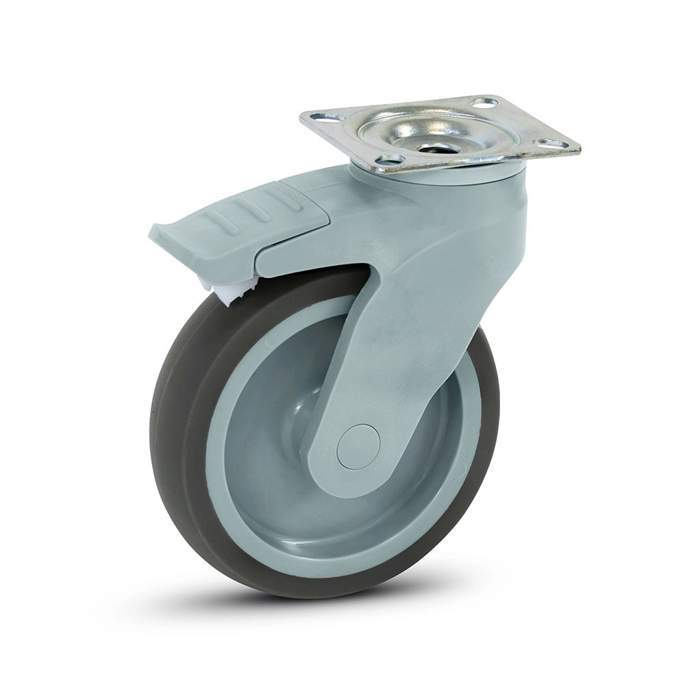 Serie PCLa serie PC está compuesta por ruedas de TPR con una carcasa de plástico duradera. Se desplazan de manera silenciosa y sin dejar marcas en distintos tipos de suelo, siendo adecuadas para uso en interiores. Ideales para carros y equipos móviles en comercios, hostelería, almacenes y entornos sanitarios. La carcasa de plástico resistente a los impactos es ligera y anticorrosiva; el TPR no contiene plastificantes, lo que la hace especialmente respetuosa con los suelos. Gracias a su diseño de bajo mantenimiento, estas ruedas son perfectas para entornos higiénicos. |