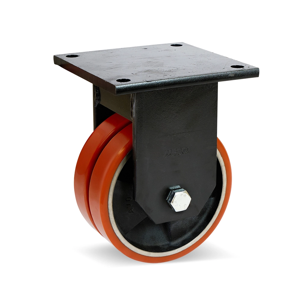 Rueda fija extremadamente robusta con ruedas dobles de PU, adecuada para cargas pesadas de hasta 2200 kg. Ø200mm.