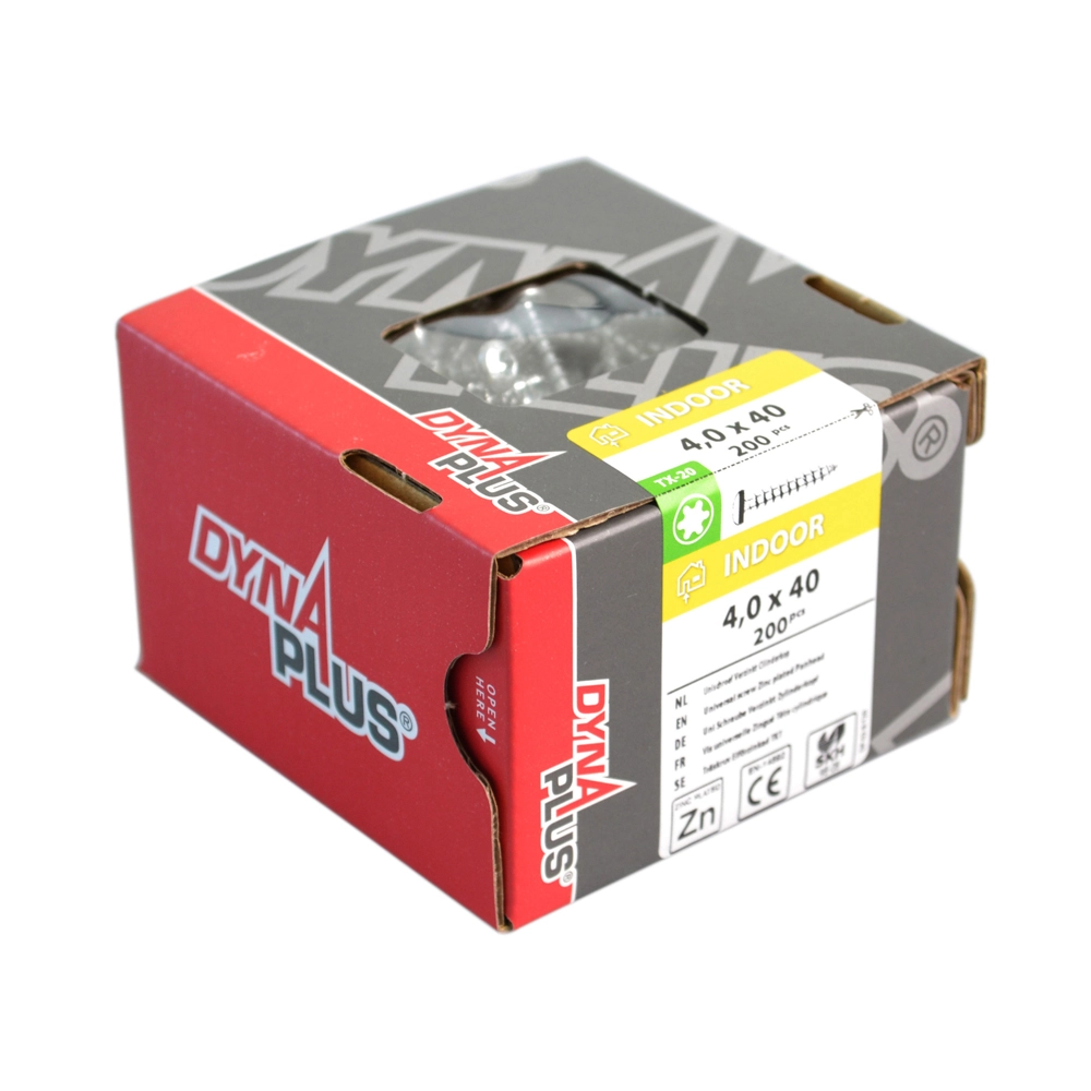 Los tornillos Dynaplus Uni contienen tornillos de culata Torx 25 de 4,5x30 mm. Estos tornillos totalmente atornillados y con recubrimiento de zinc vienen en un paquete de 200.