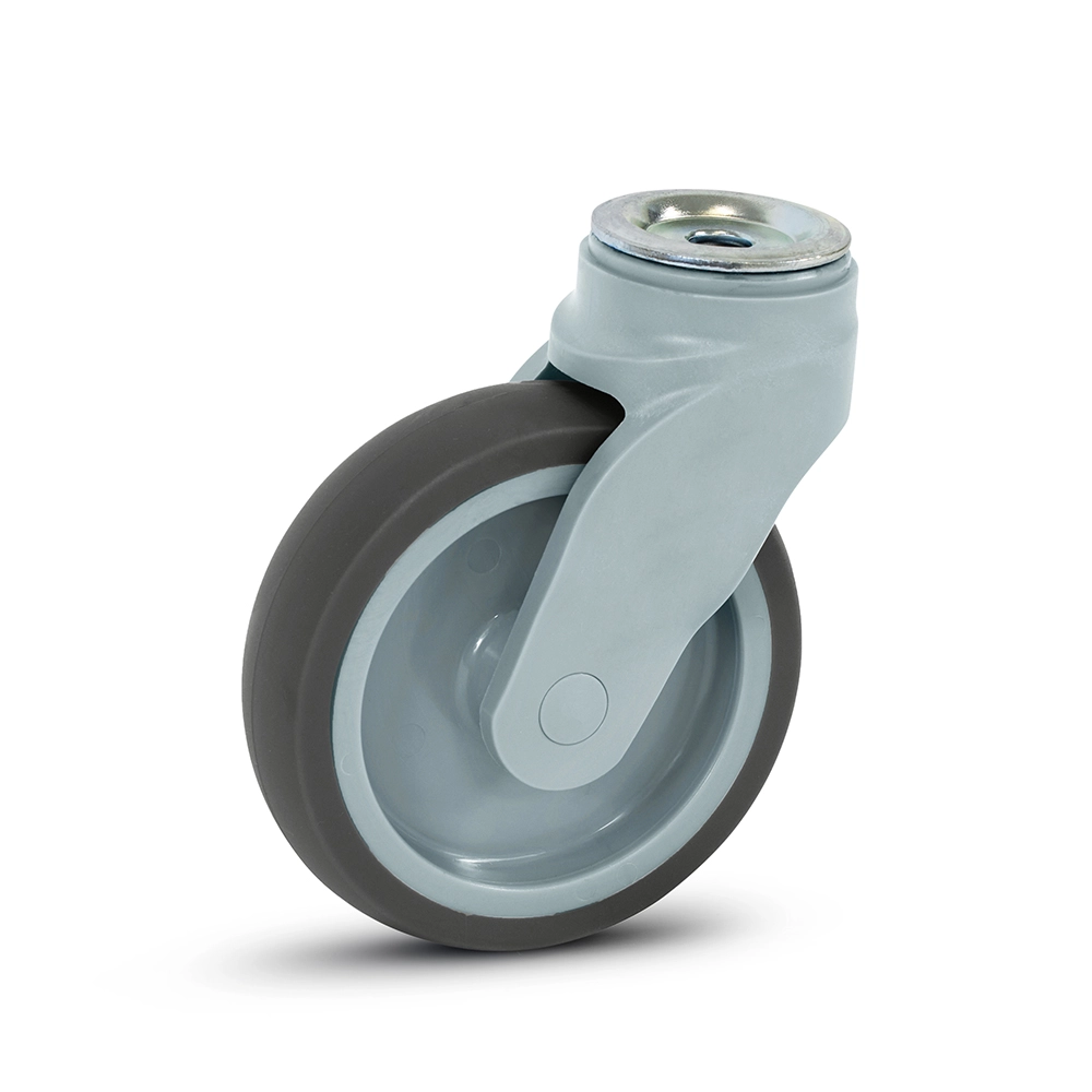 Rueda giratoria de plástico gris con agujero para perno - 125mm - 100kg