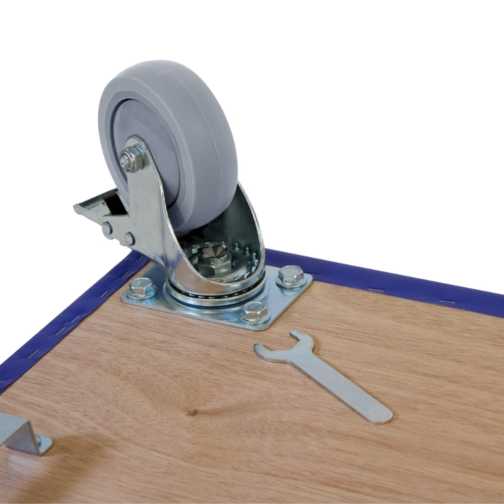 Este rodillo para muebles está equipado con ruedas de goma y dos ruedas giratorias con freno. La plataforma de 600 x 350 mm es suficientemente robusta para una capacidad de carga de 350 kg.