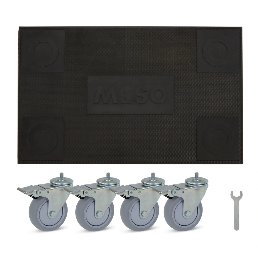 Rodillo para muebles con ruedas de goma antivibraciones, cuatro ruedas giratorias con freno, 580 mm x 350 mm y una capacidad de carga de 350 kg.