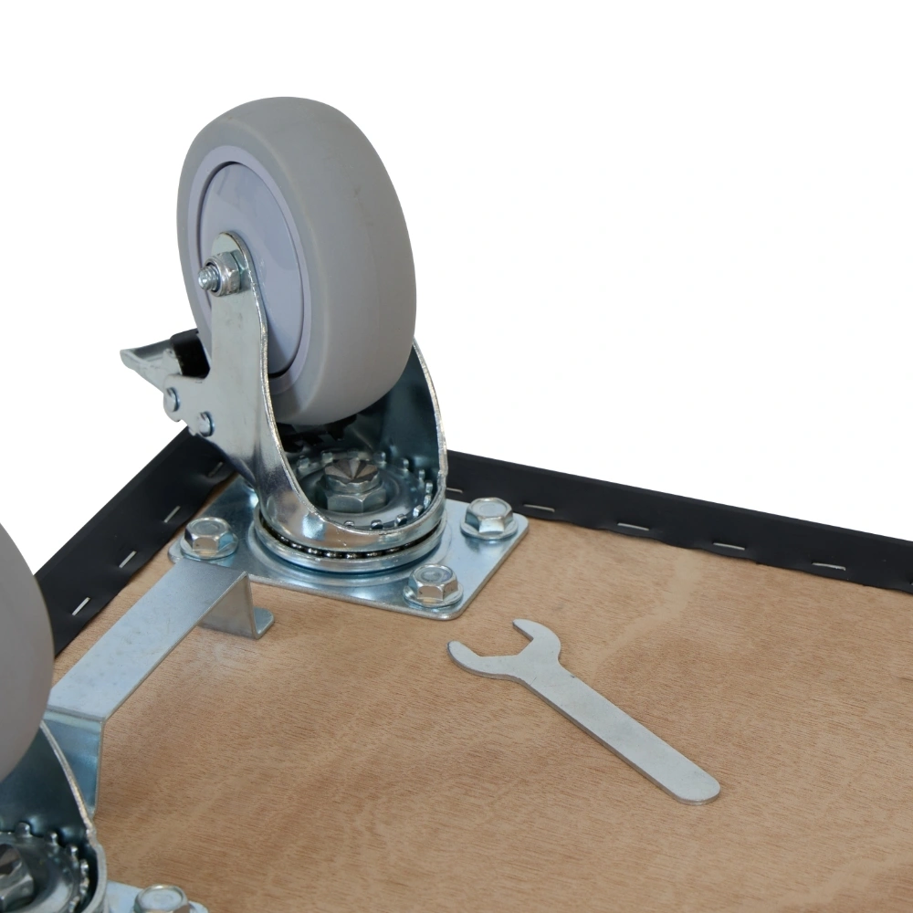 Las cuatro ruedas con freno garantizan un control óptimo, ideal para su uso en talleres, logística y mudanzas. Comodidad y seguridad en uno.