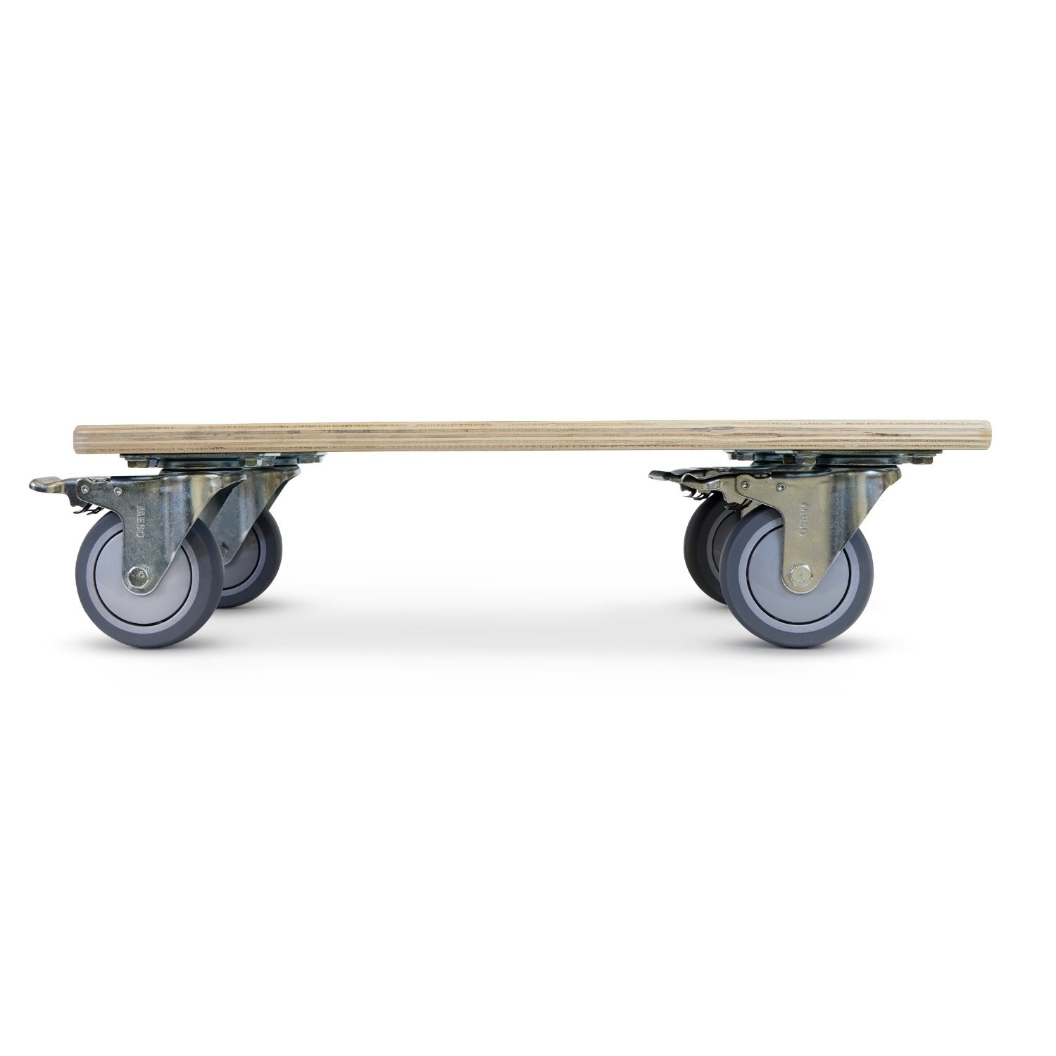 Las cuatro ruedas con freno proporcionan un control óptimo al mover y estacionar la carga, lo que hace que esta plataforma rodante sea muy adecuada para uso profesional en almacenes, talleres o en mudanzas. Elija comodidad y seguridad con esta fiable plataforma rodante para muebles.