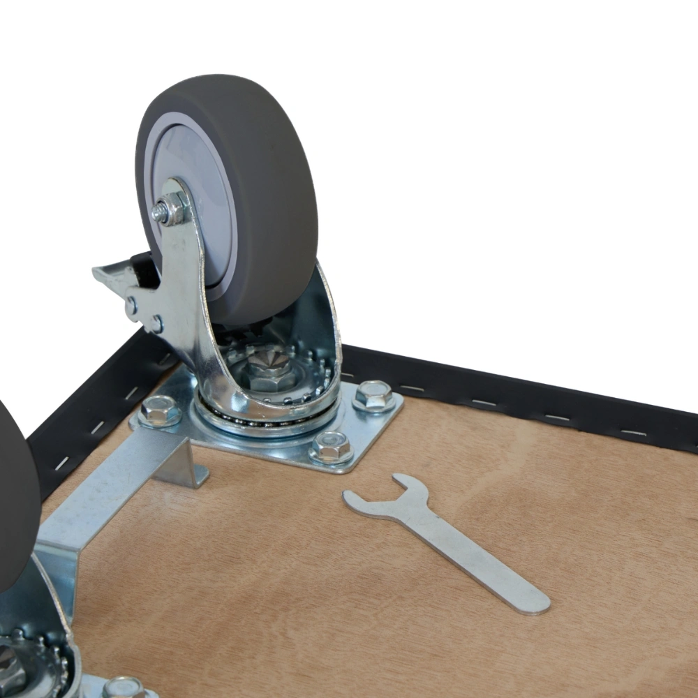 Los cuatro frenos garantizan el máximo control, lo que hace que este rodillo de transporte sea adecuado para uso profesional donde la precisión y la seguridad son importantes. Una elección ideal para almacenes, construcción de eventos o mudanzas.