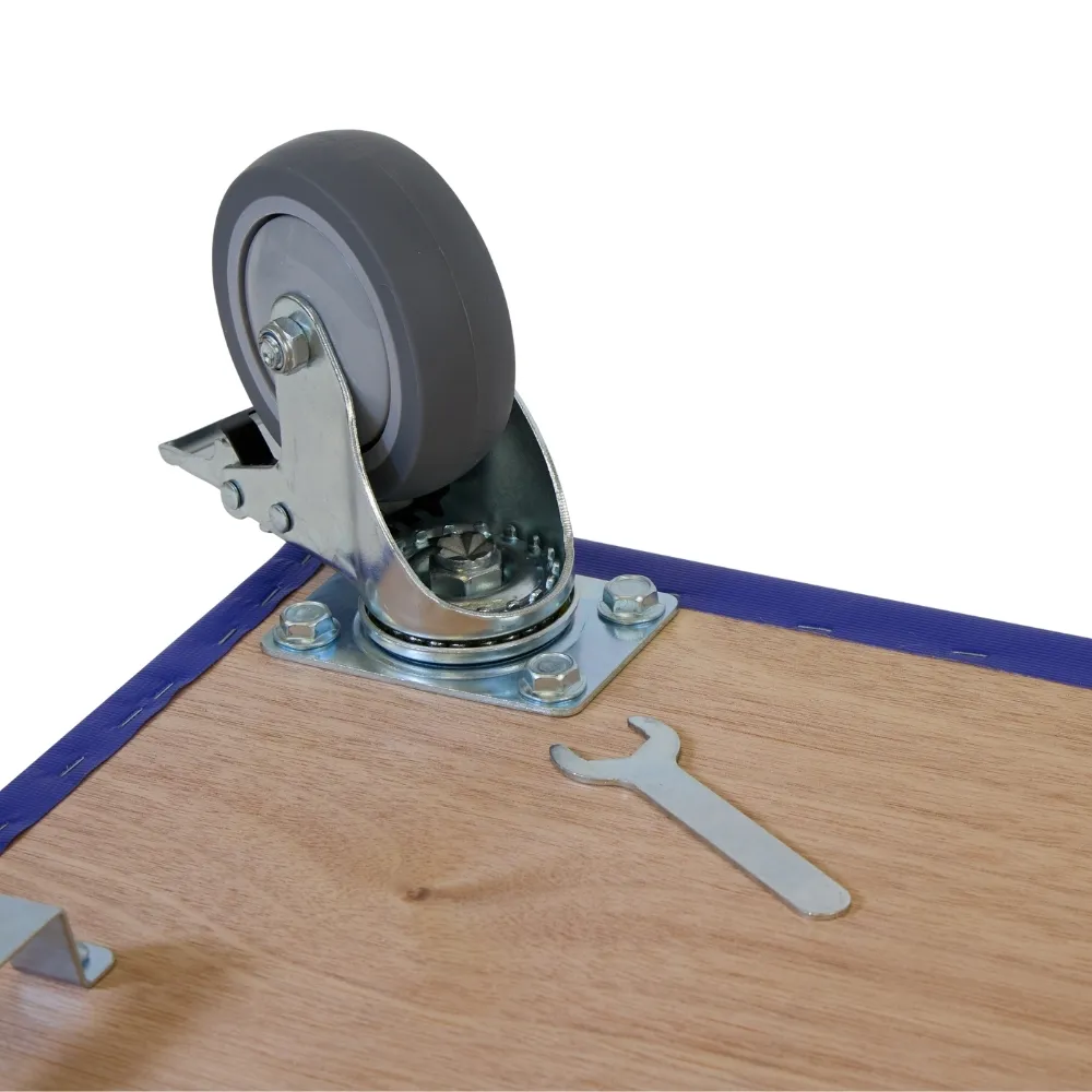 Este rodillo para muebles con cuatro ruedas de TPR con freno tiene un generoso tamaño de 600 x 350 mm y una capacidad de carga de 350 kg. Las ruedas blandas de TPR son silenciosas, no dejan rayas y son ideales para su uso en suelos interiores.