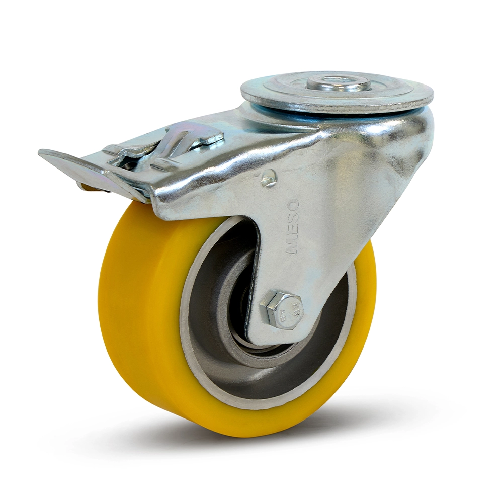 Rueda giratoria de PU de alta resistencia con freno y agujero para perno - 100mm - 350kg