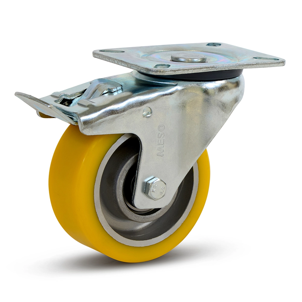Ruedas giratorias de PU de alta resistencia con freno y placa superior - 100mm - 350kg