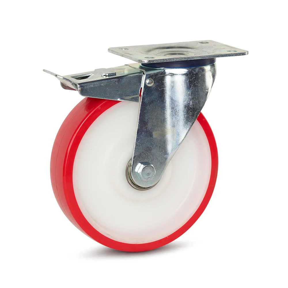 Rueda giratoria PU frenada con placa superior - 200mm - 400kg