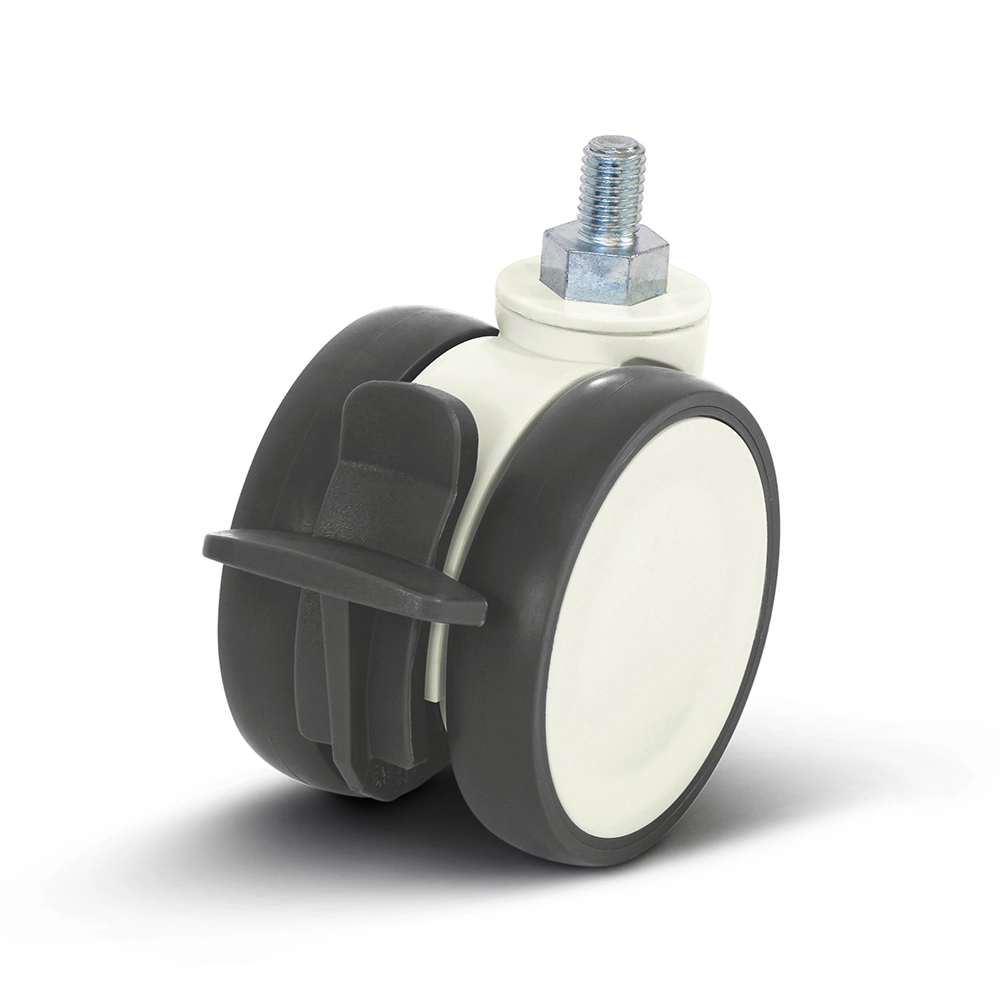 Rueda blanca giratoria doble para muebles con freno y rosca - 75mm - 80kg