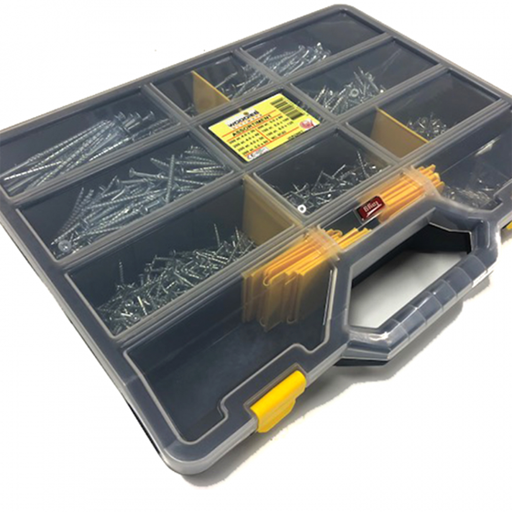 Woodies ofrece un completo juego de 1.200 tornillos, con sus "Ultimate Screws". Diseñado para satisfacer diversas necesidades de fijación, este completo kit ofrece una selección de tornillos de alta calidad almacenados en un estuche organizado. Ideal tanto para profesionales como para aficionados al bricolaje, el juego garantiza tener el tornillo adecuado para cada proyecto, aumentando la eficacia y la comodidad. El juego incluye varios tipos y tamaños de tornillos, lo que garantiza versatilidad y preparación para diversas tareas. Esta solución todo en uno simplifica la preparación de proyectos y ayuda a los usuarios a conseguir fijaciones seguras y fiables en trabajos de carpintería, construcción y reparación.