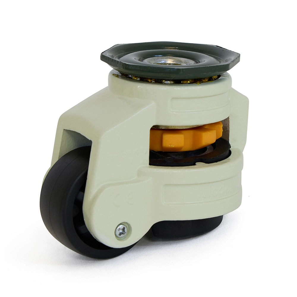 Esta rueda elevadora compacta se utiliza ampliamente debajo de jardineras, sillas de oficina, perros de muebles, muebles, estanterías de almacenamiento, recogepedidos, camiones de plataforma, carros de limpieza y diversos carros de transporte.